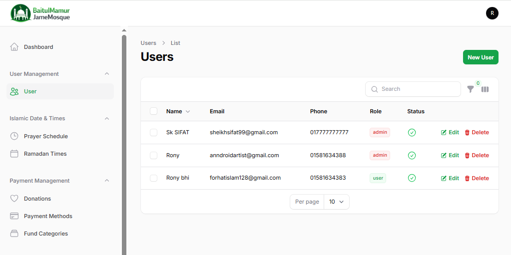 অ্যাডমিন প্যানেল ফোকাস (মসজিদ কমিটি/পরিচালকদের জন্য)